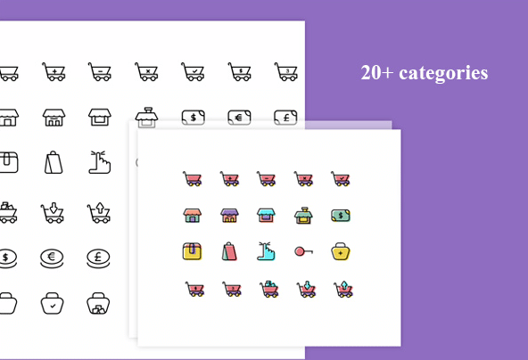 Difficile de résister au look des icônes Smashicons. Originales, ces 300 icônes se déclinent en 4 styles différents, disponibles au format AI, PSD et Sketch.