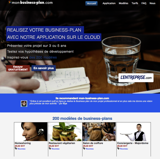 Le site propose même des modèles gratuits, par secteur d’activité. Vous possédez alors un plan à suivre où il ne vous reste qu’à intégrer vos propres informations.