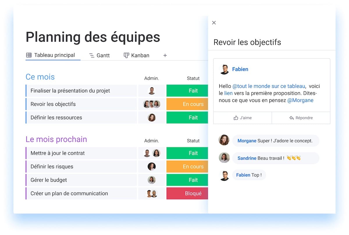 monday.com est une application ultra performante qui facilite la collaboration et la communication entre les collaborateurs à distance. Ce logiciel offre une interface axée sur la collaboration qui vous permet de rester informé, connecté et de mieux communiquer avec votre équipe interne et les freelances externes tout en gérant votre travail quotidien.