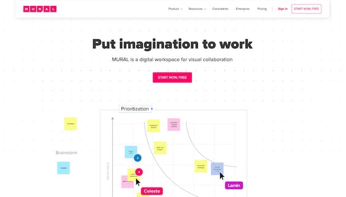 Mural est un outil de travail collaboratif très utile pour le brainstorming et donc pour s’échanger des idées avec votre prestataire.