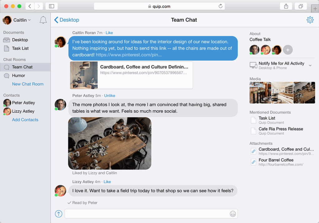Quip est une messagerie qui a été rachetée par Salesforce. Exit les onglets et les tâches inutiles, son design simpliste vous permet de vous concentrer uniquement sur l’essentiel.