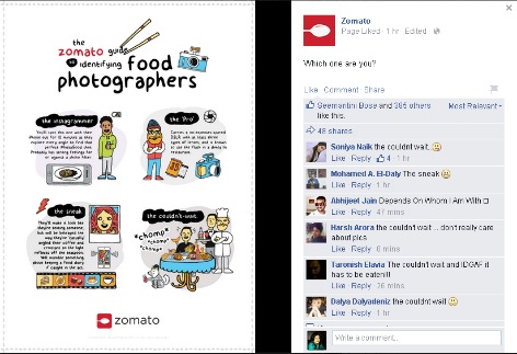 Zomato, une application qui permet de chercher des restaurants, écrit de très bons messages sur les réseaux sociaux. Les responsables posent des questions pour connaître leur public. Ils accompagnent le tout avec des graphiques de très bonne qualité. Au final, leurs publications obtiennent de nombreuses réactions.