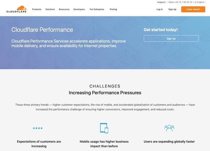Cloudflare est l’une des solutions les plus répandues pour alléger la charge de votre site web et en renforcer la sécurité. Cloudflare alimente plus de 20 millions de ressources et dispose de 335 emplacement dans le monde.