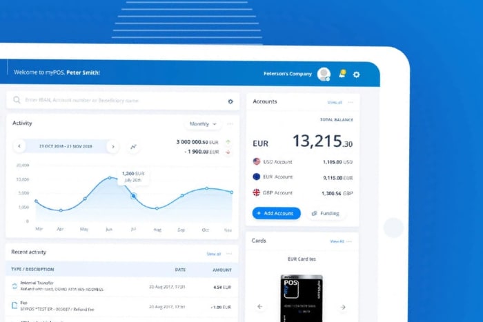 myPOS permet la gestion de plusieurs méthodes de paiement, par téléphone, en ligne et en magasin, à travers un seul compte pro en ligne sans frais. Peu importe la taille de votre entreprise et votre activité, cette plateforme vous permet de gérer vos fonds instantanément et de visualiser vos ventes dans des outils de reporting intuitifs.