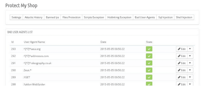 - Protect My Shop : Ce module développé par LIBRASOFT permet de paramétrer dans le back office 9 scripts de protections différents.