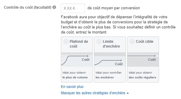 Vous pourrez laisser Facebook s’occuper des enchères ou déterminer votre propre montant. La seconde solution, si elle paraît plus coûteuse, s’avère plus performante.