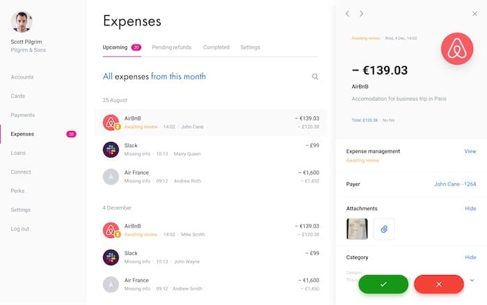 - Visualisation des dépenses en temps réel depuis le flux en direct et possibilité de les approuver / rejeter