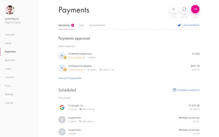 De plus, Revolut for Business regroupe toutes les informations relatives à vos transactions et comptes sur un unique tableau de bord. Grâce à cette vue, vous pouvez vérifier votre calendrier de paiements et leurs statuts, et exécuter toutes vos tâches depuis un seul et même emplacement.