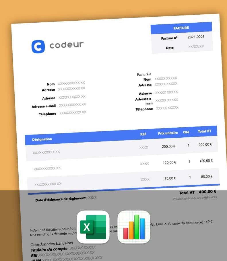 Le dossier .ZIP contient le modèle de facture aux formats : .xlsx (excel) + Numbers (Apple).