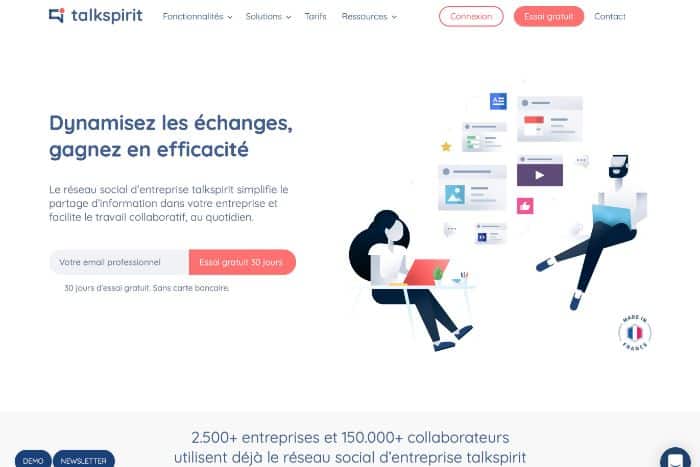 Réseau social interne sécurisé pour les PME, Talkspirit simplifie le partage d’information, facilite le travail collaboratif et améliore la communication au quotidien, en entreprise.