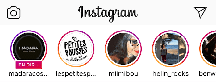 Sur Instagram, ce format est mis en avant sur la page d’accueil : il apparaît en tête des stories avec un bandeau coloré.