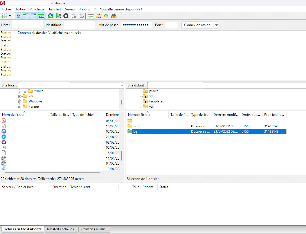 Il indique que la connexion au serveur n’a pas pu s’effectuer à cause d’informations d’identification utilisateur invalides.